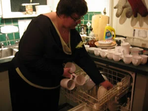 The Gallery Director, washing dishes